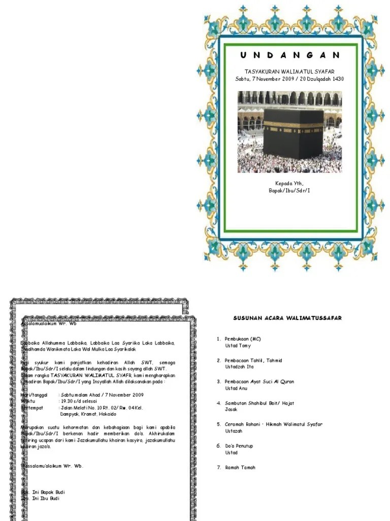 Tausiah Walimatussafar Umroh - Contoh Undangan Walimatul Safar Umroh Paket Tour Murah Bayar Cash Atau Cicilan Bersamawisata - Ceramah sunda kh.hoerudin alby di acara walimatus safar umroh.. Tentang haji dan umroh ceramah singkat. Akhlak dan muamalah · artikel khutbah jumat · bersih hati · ceramah singkat · fikih · jalan kebenaran · khotbah idul adha . Dalam tradisi islam di indonesia kegiatan tersebut biasa dikenal dengan walimatus safar atau istilah sederhananya selamatan . Ceramah sunda kh.hoerudin alby di acara walimatus safar umroh. Ceramah agama yang berkaitan dengan ibadah haji.